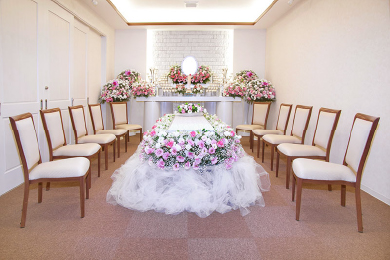 一日でお葬式をするプラン(お通夜なし)です。式場で、故人様としっかりお別れができます。