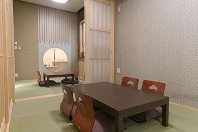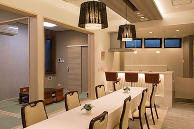 数名から最大10名まで対応の家族葬専用式場です。バスルームなどを完備した宿泊可能な親族控室でゆっくりとお寛ぎいただける式場です。